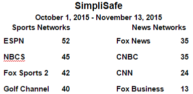 SimpliSafe returned to national cable in a big way with their current Short Form DRTV campaign. This home security system has been in the Top 10 Spot Direct Response Ranking every week since early October.